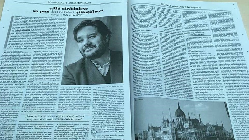 Armă de propagandă ungară, unitate militară ce va executa încercări de destabilizare a României, bombă inteligentă, segregaţio-nistă. Sînt cîteva din grozăviile spuse în spațiul public românesc despre proiectul „Trianon 100“, lansat anul trecut de Academia de Științe a Ungariei. Am cunoscut genul acesta de discurs, provincial, cu atacuri belicoase, la mijlocul anilor 1980, în perioada celei mai nocive propagande ceaușiste. Atunci, în armată fiind, ni se citeau seară de seară, într-un decor perfect orwellian, texte de înfierare a istoricilor și a lucrărilor de istorie apărute peste Tisa. Balázs Ablonczy, coordonatorul proiectului „Trianon 100“ și unul dintre cei mai interesanți exponenți ai noului val de istorici din Ungaria, a absolvit prestigioasa ELTE din Budapesta, a studiat la Sorbona, a fost visiting professor la Universitatea Indiana, peste Ocean, și director al Centrului Cultural Maghiar din Paris. A publicat mai multe cărți, printre care și Transilvania reîntoarsă: 1940-1944,apărută la Editura Institutul European în 2015. Echipa interdisciplinară pe care o coordonează acum, formată din 22 de specialiști, își propune ca, pînă în 2020, cînd se face veacul de la semnarea, pe 4 iunie, a Tratatului de la Trianon, să publice lucrări și articole și să organizeze conferințe legate de acel moment istoric, unul dintre cele mai negre din istoria Ungariei.